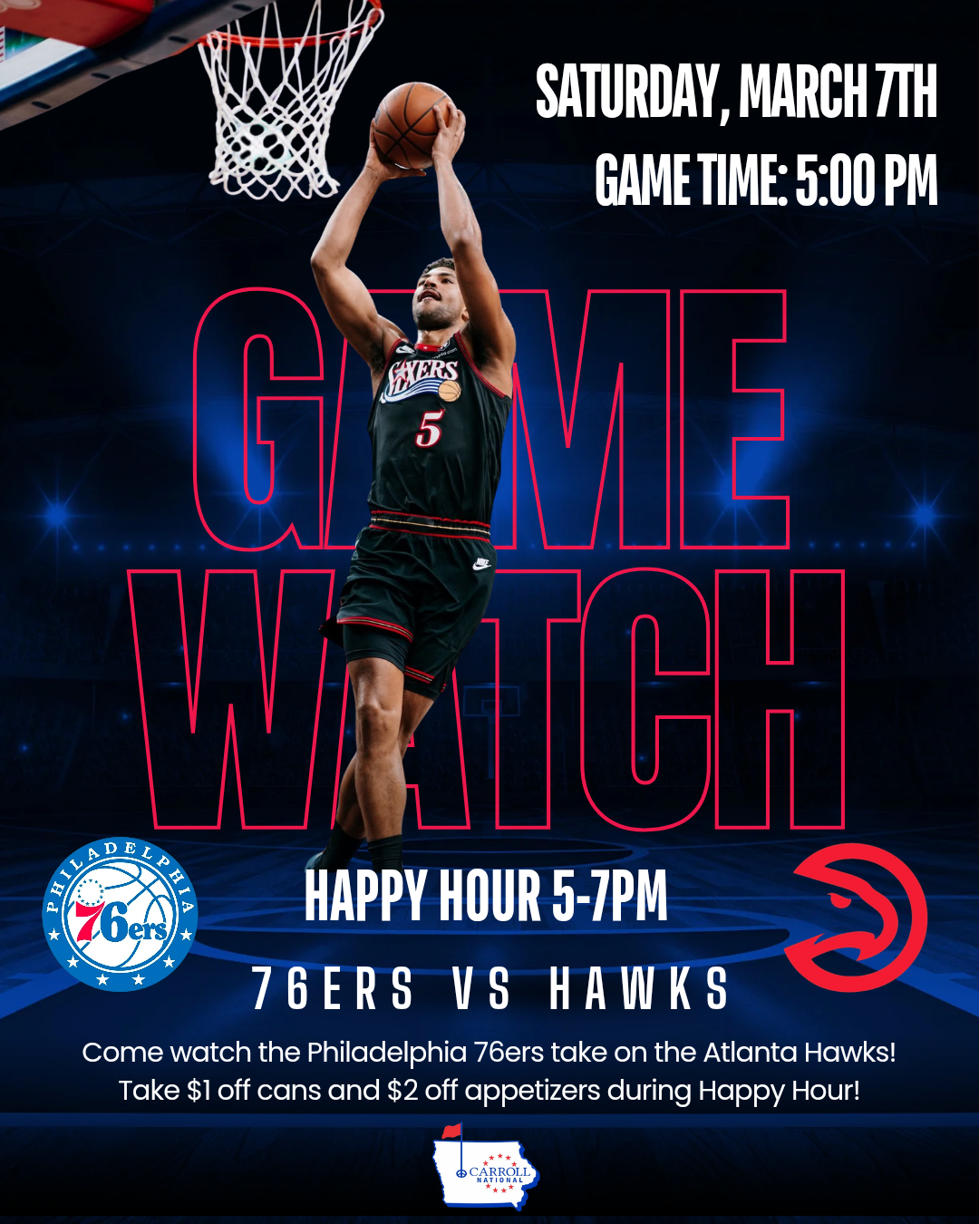 Events Calendar Carroll National Golf Club > « All Events This event has passed. 76ers GAME WATCH & HAPPY HOUR March 7 @ 5:00 pm - 9:00 pm « TRIVIA & MEMBER DRAW RESULTS BINGO NIGHT & MEMBER DRAW RESULTS » Add to calendar Google Calendar iCalendar Outlook 365 Outlook Live Details Date: March 7 Time: 5:00 pm - 9:00 pm