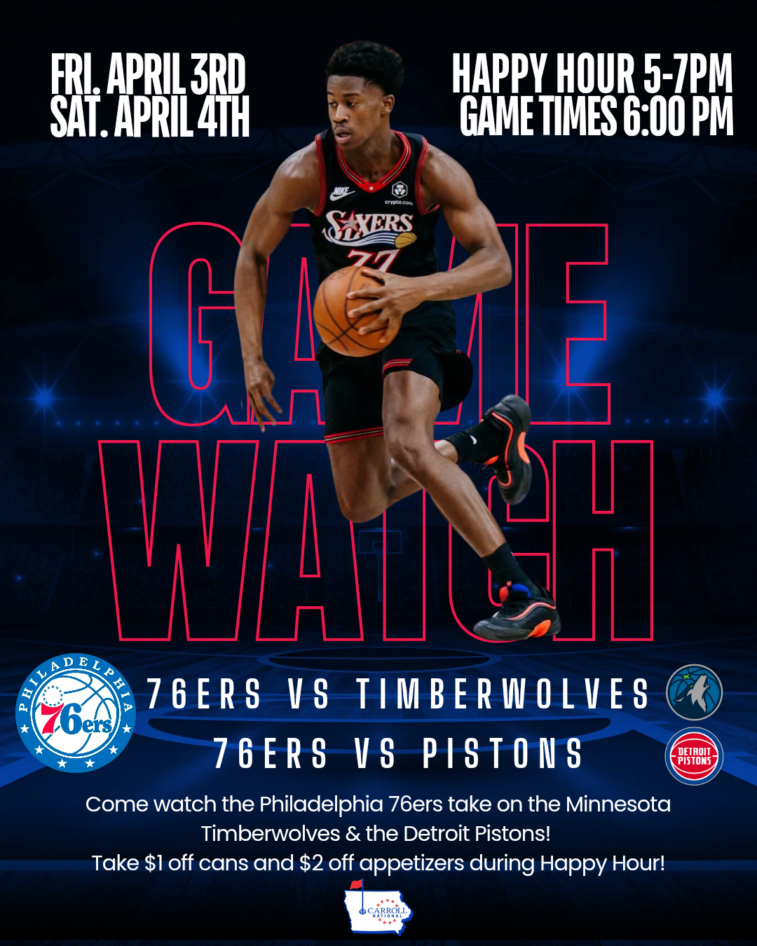 76ers GAME WATCH & HAPPY HOUR