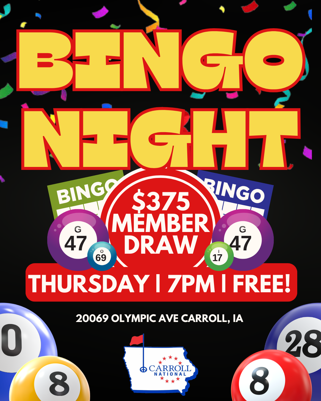 Events Calendar Carroll National Golf Club > « All Events This event has passed. BINGO & MEMBER DRAW RESULTS February 26 @ 7:00 pm - 8:00 pm « 76ers GAME WATCH & HAPPY HOUR MEMBER EVENT_A Night with Tony Bohnenkamp » MEMBER DRAW Matt & Crystal Harrison were not present to collect. Next weeks drawing is $400 Add to calendar Google Calendar iCalendar Outlook 365 Outlook Live Details Date: February 26 Time: 7:00 pm - 8:00 pm Event Category: Clubhouse Event