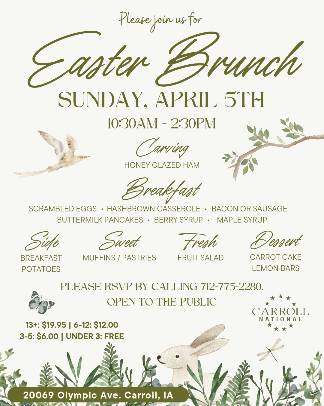 Events Calendar Carroll National Golf Club > « All Events EASTER BRUNCH April 5 @ 10:30 am - 2:30 pm « 76ers GAME WATCH & HAPPY HOUR MEN’S SUPPER LEAGUE TEAM MEETINGS » Add to calendar Google Calendar iCalendar Outlook 365 Outlook Live Details Date: April 5 Time: 10:30 am - 2:30 pm